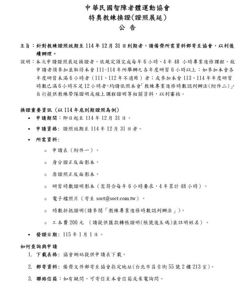 備註:申請表可直接參閱附件公告說明中的附件一,或是至協會網站常用文件下載處進行下載。